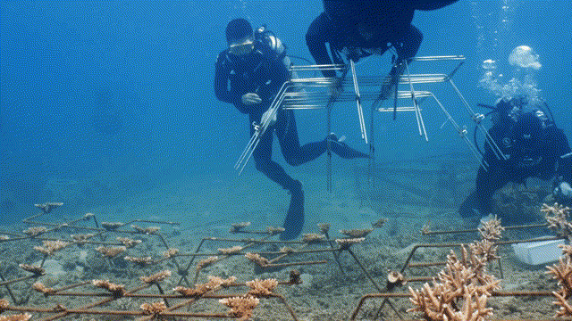 修复团队在海底移植珊瑚(央广网记者 陶淦 制)